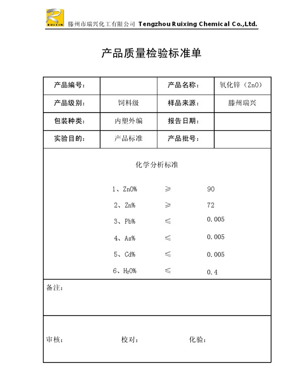 瑞興化工有限公司是生產(chǎn)氧化鋅的重點企業(yè),于2008年通過ISO9001:2008質(zhì)量管理體系認證。“瑞興”牌氧化鋅在國內(nèi)擁有較大穩(wěn)定的市場,并遠銷東南亞、中東、中南美等國家和地區(qū),在國內(nèi)外享有較高聲譽。